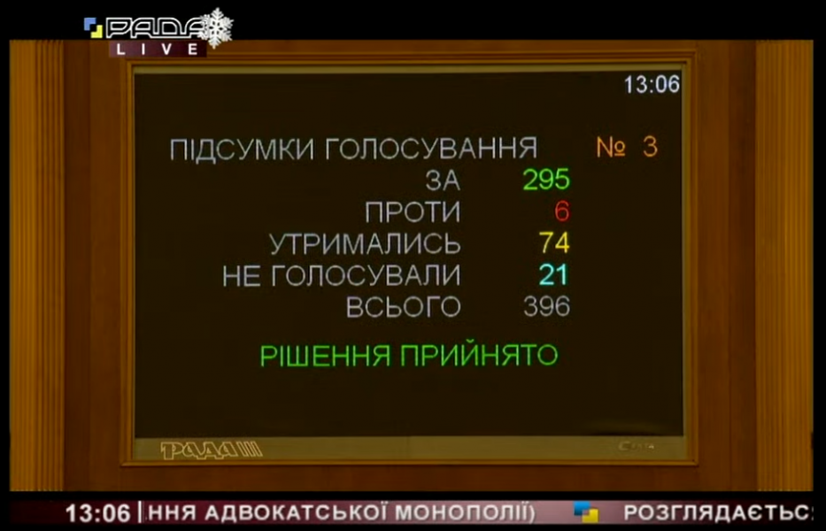 Закон ухвалено в цілому 304 голосами народних депутатів.