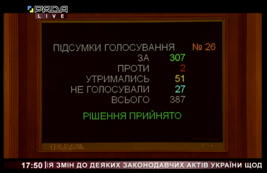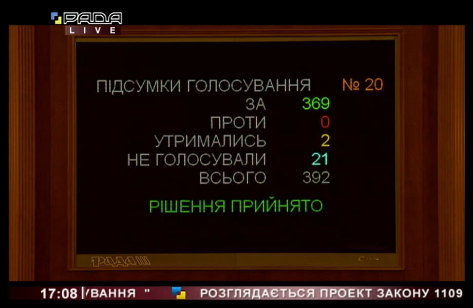 Верховна Рада 369 голосами «за» прийняла проект за основу.