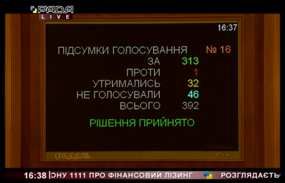 Проект Закону про фінансовий лізинг №1111 доповів Голова Комітету з питань фінансів, податкової та митної політики Данило Гетманцев. Він зазначив, що проект передбачає прийняття нового Закону України "Про фінансових лізинг", який замінить чинний Закон з такою ж назвою. З метою узгодження з новим Законом пропонуються відповідні зміни до Кримінального, Господарського, Цивільного кодексів України, Кодексу України з процедури банкрутства, Закону України "Про дорожній рух" та Декрету Кабінету Міністрів України "Про державне мито".