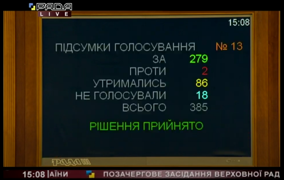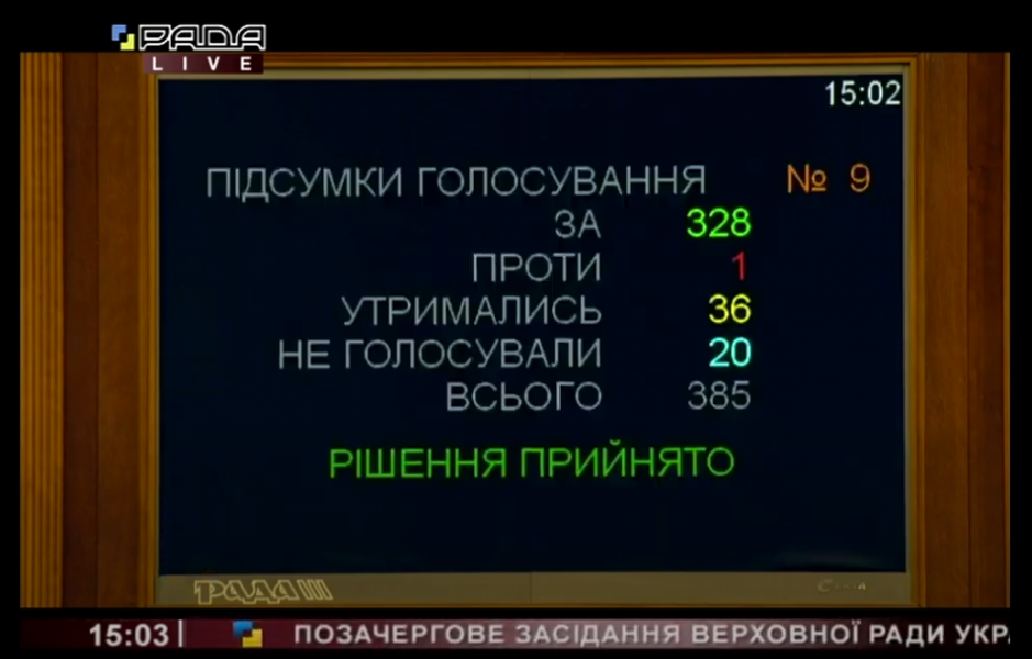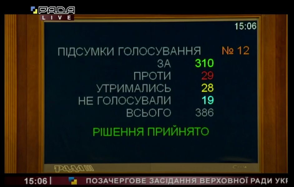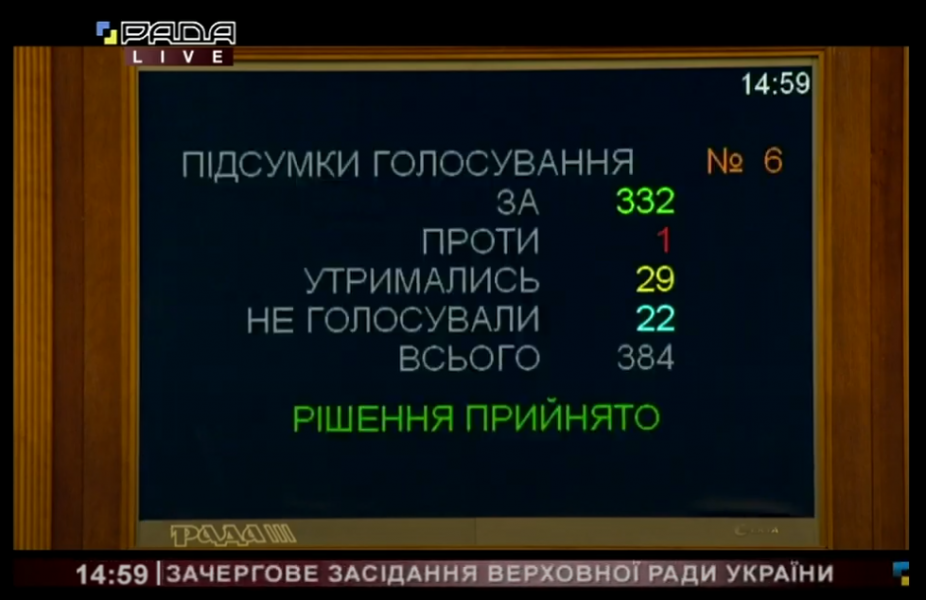 Наступним голосуванням народні депутати 328 голосами прийняли законопроект в цілому.