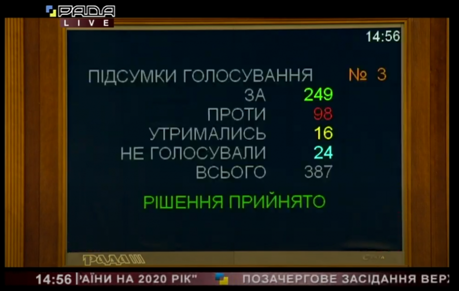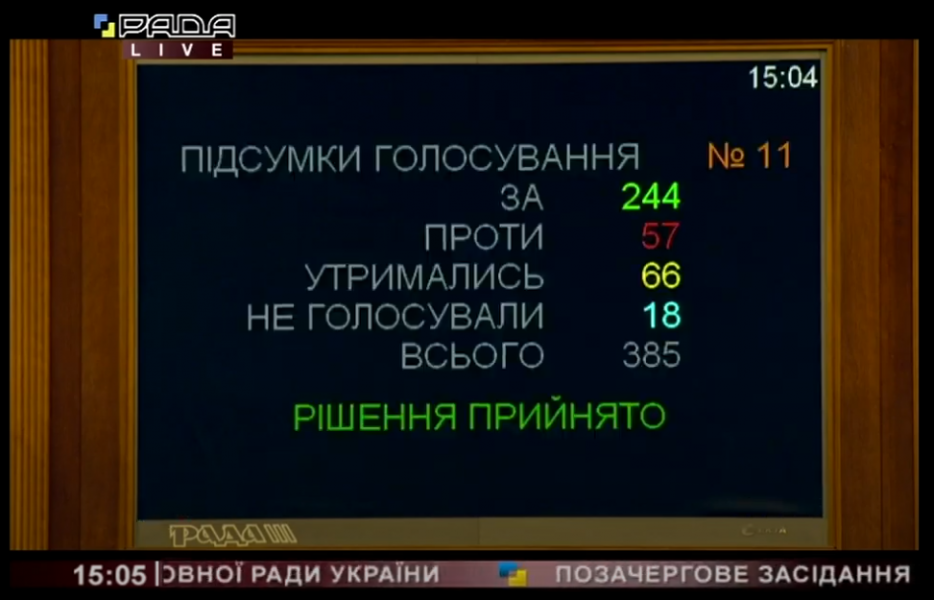 252 голосами законопроект було прийнято за основу і 249 голосами «за» - в цілому.