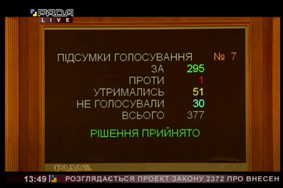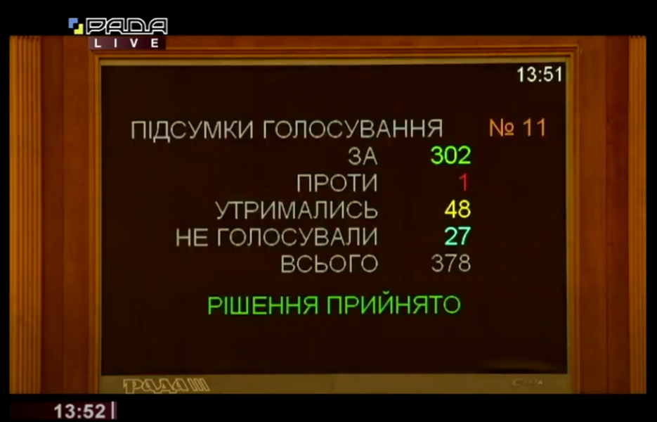 Проект Закону був підтриманий за основу 318-ма народними депутатами і 302-ма – в цілому.