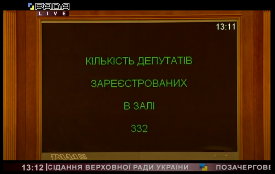Для участі у засіданні зареєструвалися 332 народних депутатів.