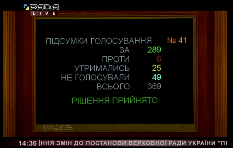 За результатами голосування законопроект 288 голосами «за» прийнято за основу.