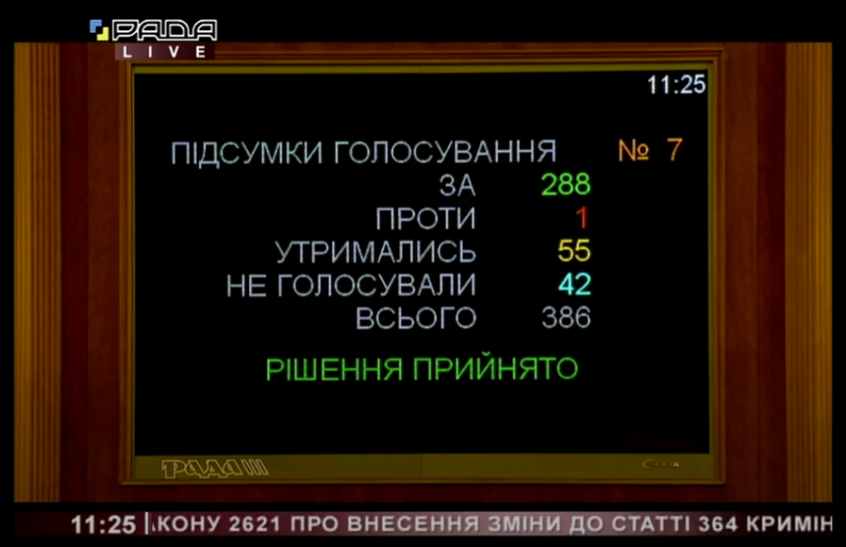 Даний законопроект в цілому підтримали 288 народних депутатів.