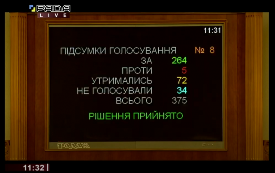 264 голосами «за» народні депутати підтримали рішення Комітету.