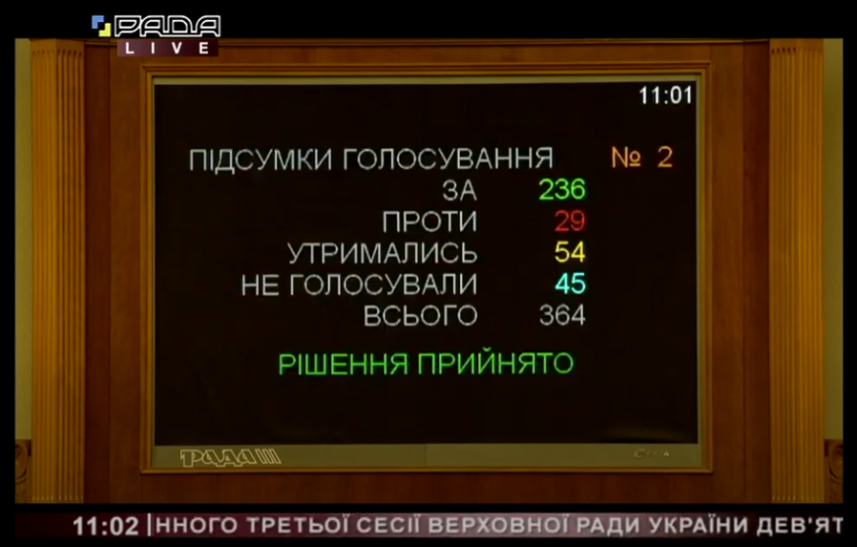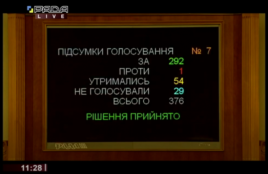 260 голосами «за» законопроект за результатами голосування прийнято у першому читанні за основу.