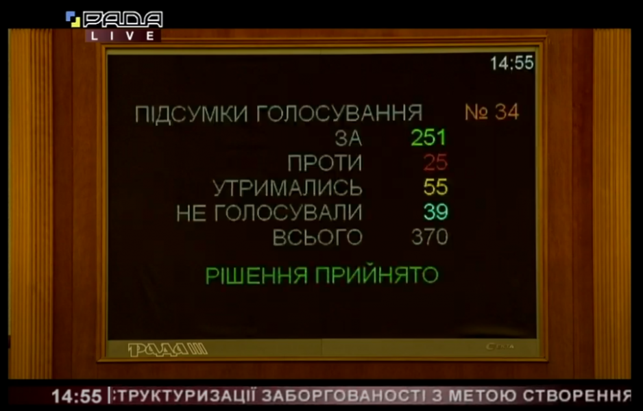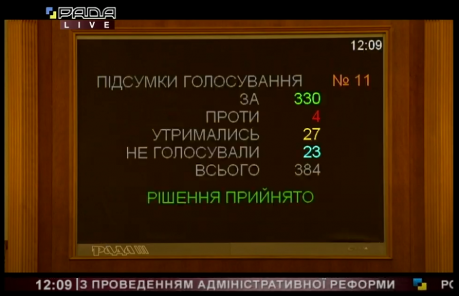 325 голосами законопроект прийнято за основу і 330 голосами «за» - в цілому з техніко-юридичними правками.