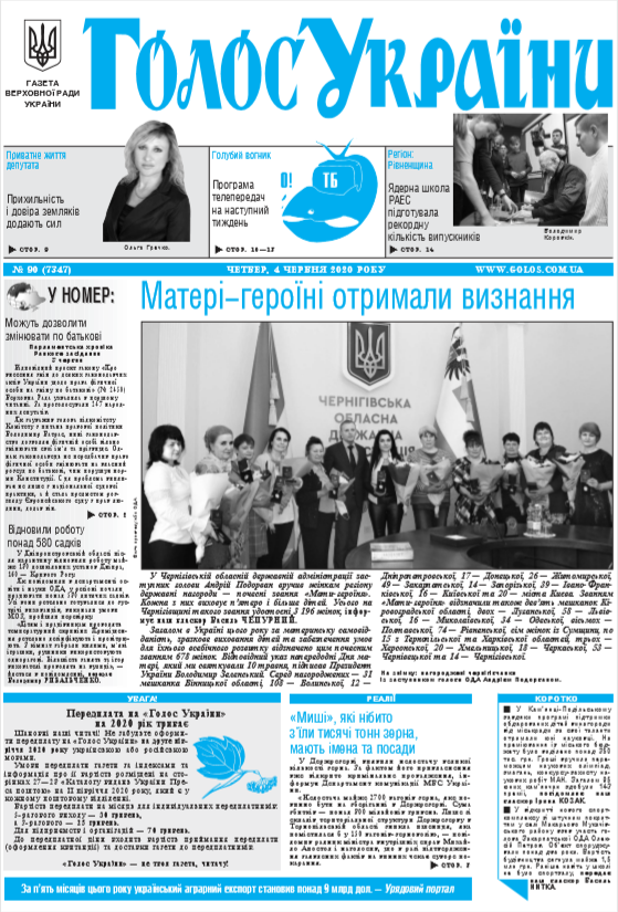 Повний випуск «Голосу України» від 04.06.2020 на сайті http://www.golos.com.ua