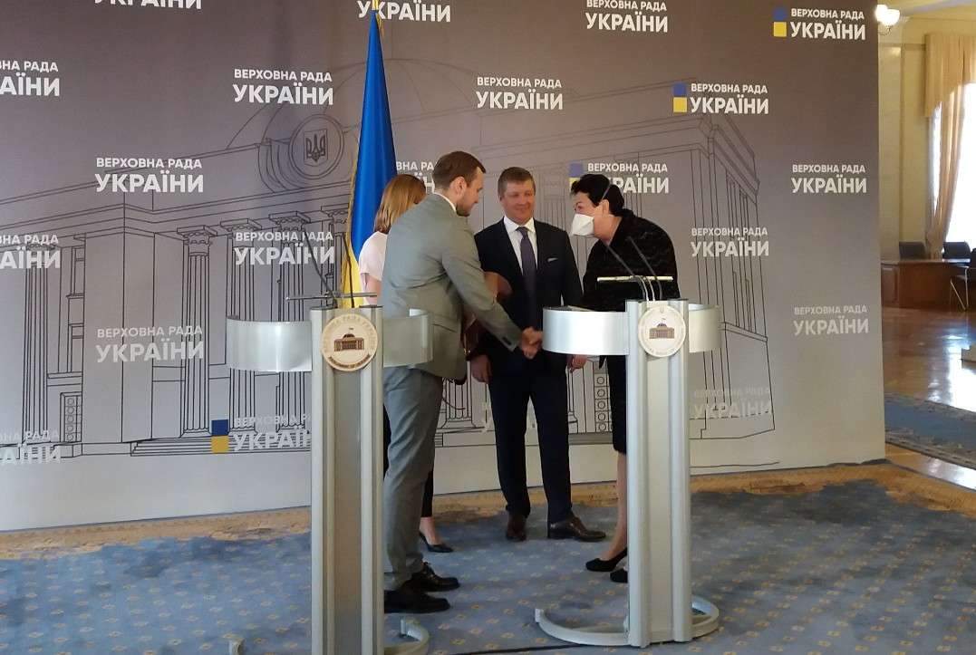 Урочиста церемонія передачі очільникам київських лікарень сертифікатів на використання відремонтованих апаратів штучної вентиляції легень (ШВЛ) відбулася сьогодні у медіа центрі Верховної Ради.