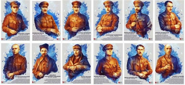 Серед онлайн експозицій Арт-плакати «Військова еліта Української революції 1917-1921 років». Ідею арт-плакатів – це 12 постерів із зображенням легендарних старшин, які стояли біля витоків української армії - Український інститут національної пам'яті втілив спільно з освітньою платформою «Експертний Корпус». Вони стали продовженням серії проектів Українського інституту національної пам'яті, присвячених темі війська та військовим традиціям.https://uinp.gov.ua/vystavkovi-proekty/art-plakaty-viyskova-elita-ukrayinskoyi-revolyuciyi-1917-1921-rokiv