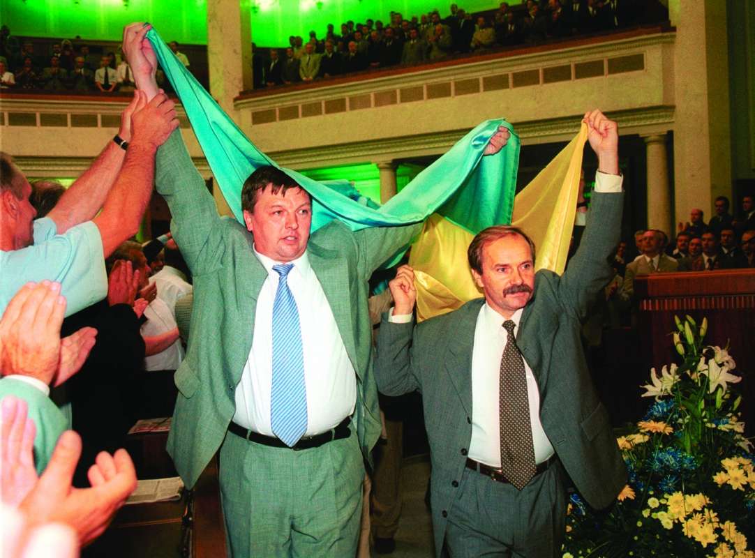 Внесення Прапора Незалежності України до зали пленарних засідань Верховної Ради України 24 серпня 1991 року. Фото Олександра Клименка, газета "Голос України"