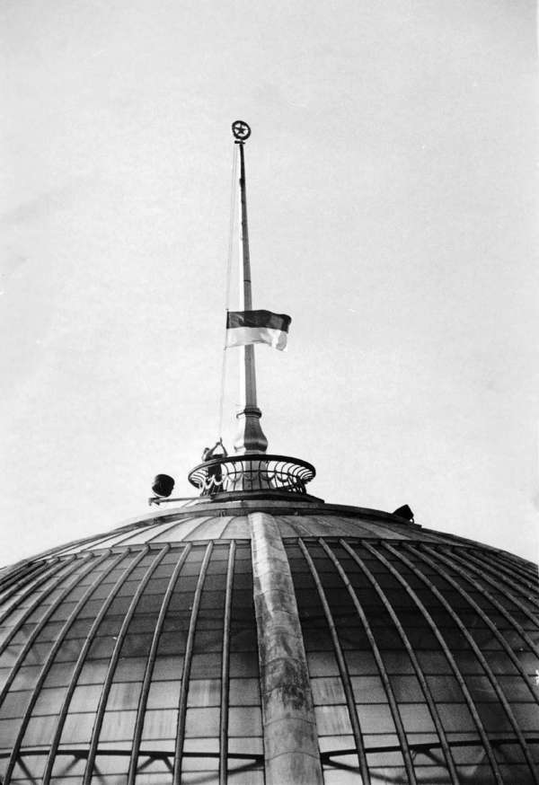 Підняття прапора над будинком Верховної Ради України, 4 вересня 1991 року. Фото Олександра Клименка, газета «Голос України».