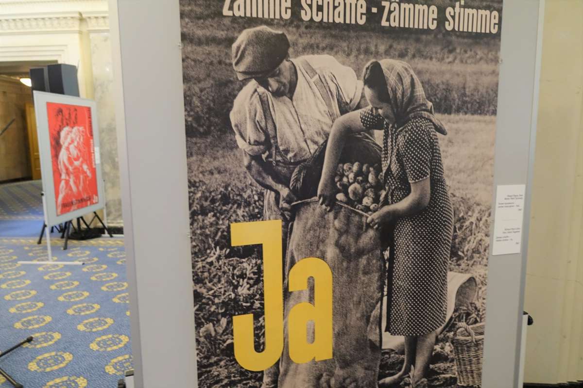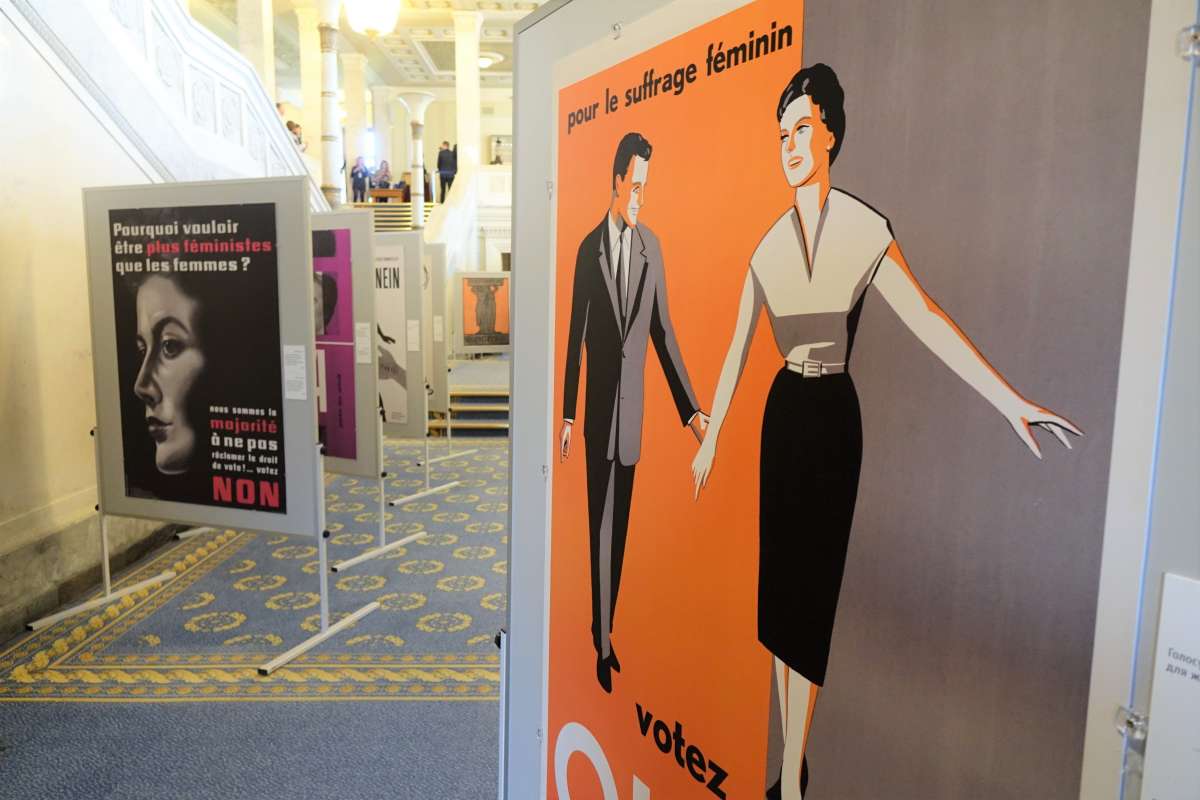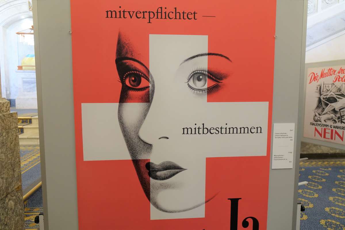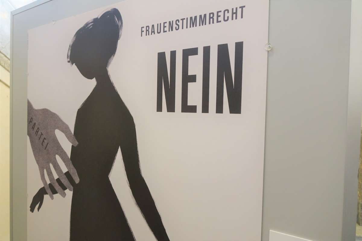 Плакати про виборче право з 1920 року, зроблені в тому числі і дизайнерами-жінками, зображують класично визначені ролі та гендерні стереотипи, але аргументують рівність прав. Вони розповідають про те, що у 1950-их роках почалася поступова зміна переконань, не в останню чергу через зростаючу присутність жінок у сфері праці. У 1959 році питання права голосу для жінок уперше постало на загальнонаціональному референдумі, тоді, коли майже всі країни Центральної Європи ввели виборче право для обох статей ще після Першої світової війни. На плакатах того часу постійно улещуються чоловіки, які, зрештою, приймали рішення у цій справі, оскільки лише вони мали право голосу.