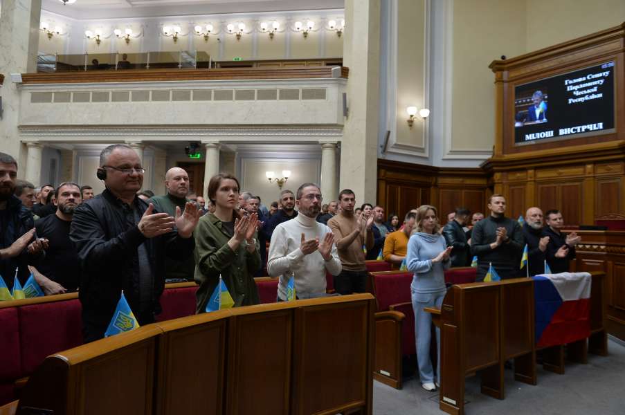 У серпні минулого року я був у Києві на відкритті Кримської платформи, яка підтримала цілісність і суверенітет України, підтримала повернення незаконно анексованого Криму. Тоді, у своєму виступі тут перед вами, я згадував про 1938 рік і Мюнхенський договір як сумну паралель між чеською та українською історіями, як сумну паралель між чеськими Судетами та українським Кримом. Визнаю, я не очікував, що за 8 місяців після виступу, я буду знову стояти в Українському Парламенті та говорити про те, що доля знищених путінськими військами міст Буча, Ірпінь і Бородянка дуже схожа на долі містечок, які були знищені гітлерівськими військами – Лідіце та Лежаки.