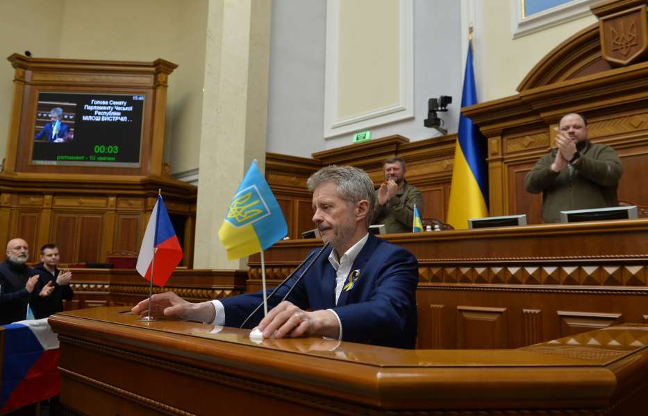 Звернення Голови Сенату Парламенту Чеської Республіки Мілоша Вистрчіла до українського Парламенту під час засідання Верховної Ради України 14 квітня.