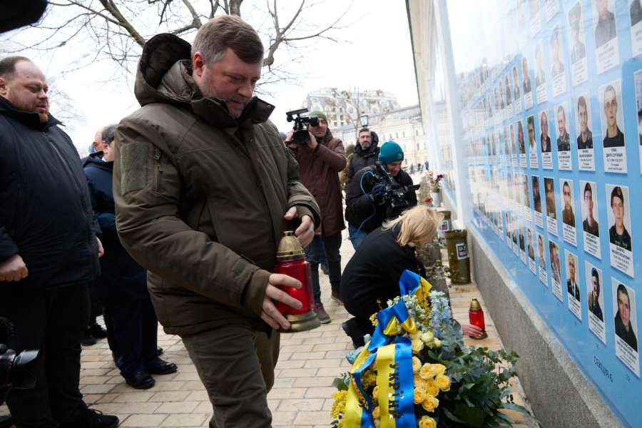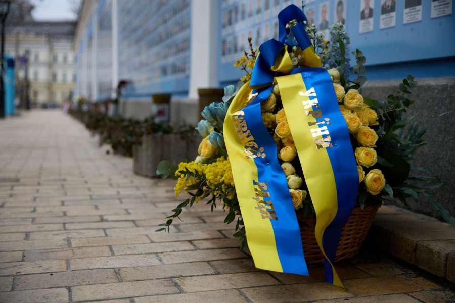Покладання відбулася біля Стіни пам’яті полеглих за Україну поряд із Михайлівським собором у центрі Києва.