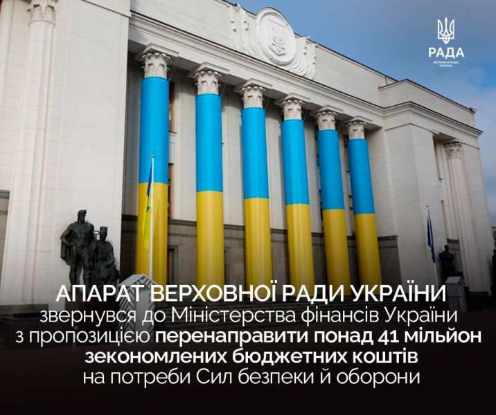 З огляду на повномасштабну російську агресію та потреби Збройних Сил України, Апарат Верховної Ради України пропонує зекономлені кошти спрямувати на підтримку Сил безпеки та оборони.