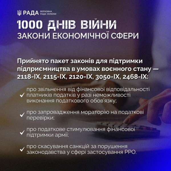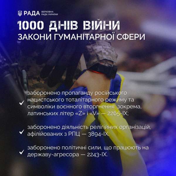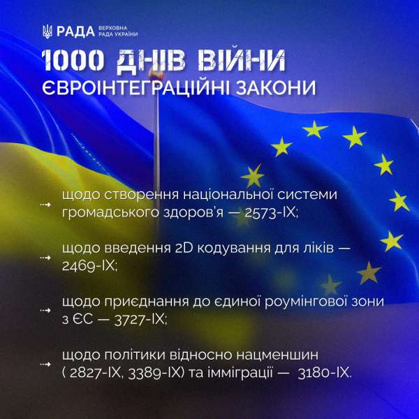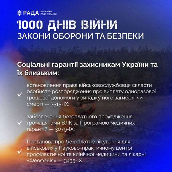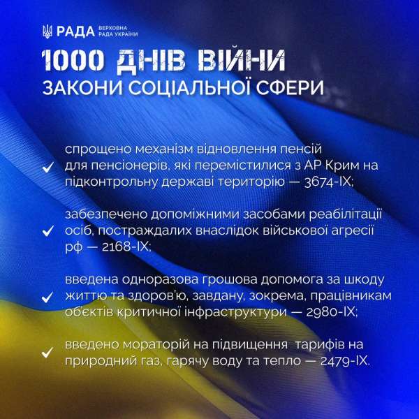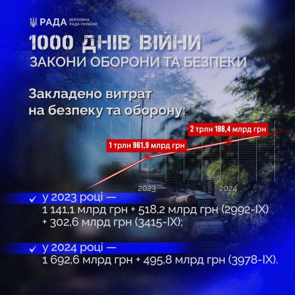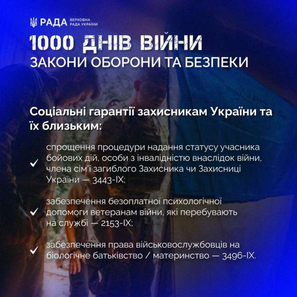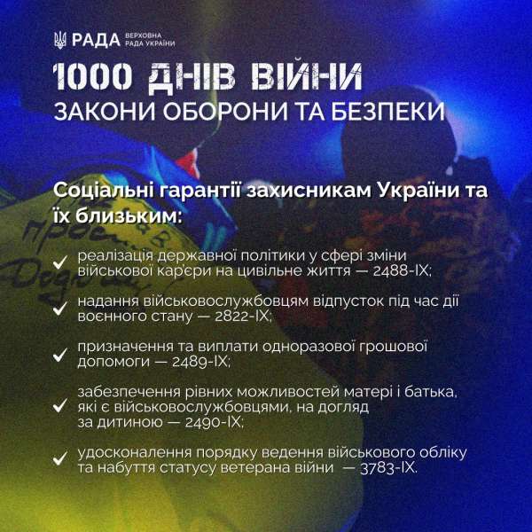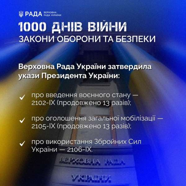 За 1000 днів від початку повномасштабного вторгнення український Парламент прийняв значну кількість законів, що зміцнюють Сили оборони України, підтримують економіку та захищають наших громадян.