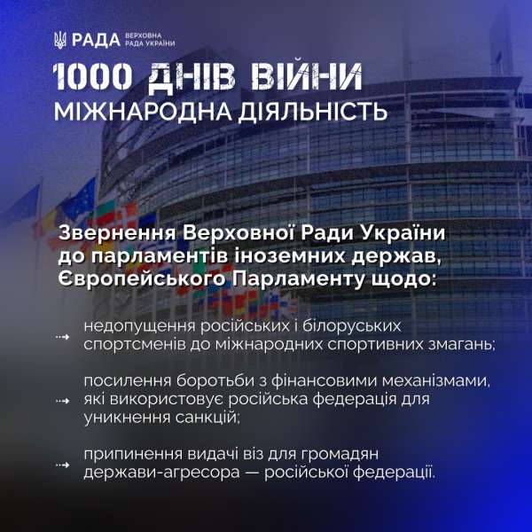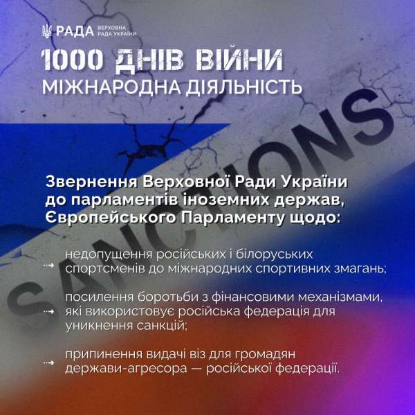 • недопущення російських і білоруських спортсменів до міжнародних спортивних змагань та санкцій щодо представників держав-агресорок.