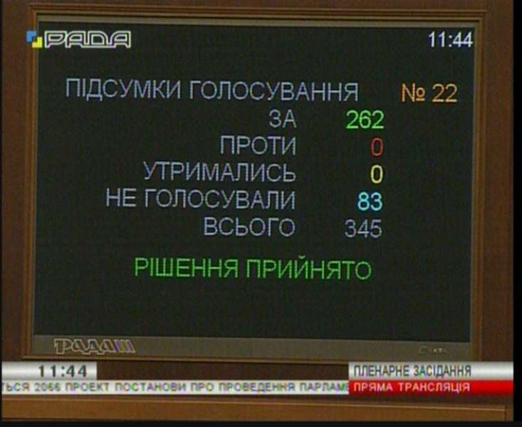 262 голосами проект постанови було прийнято.