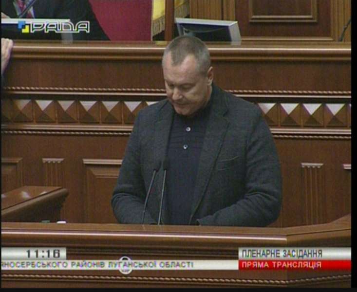 Проект постанови про зміни в адміністративно-територіальному устрої Луганської області, зміну і встановлення меж Попаснянського і Слов'яносербського районів Луганської області (реєстр. №1601) доповів народний депутат Андрій Артеменко. Він повідомив, що проектом пропонується встановити нові межі Попаснянського та Славяносербського районів Луганської області в зв'язку з необхідністю приєднання земель площею 51 тисяча га села Жолобок Фрунзенської селищної ради до Попаснянського району Луганської області.
