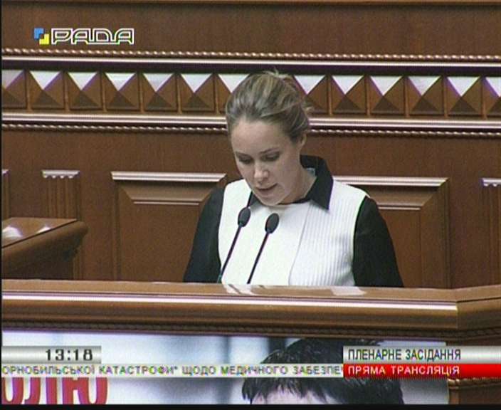 Проект закону про внесення змін до Закону "Про статус і соціальний захист громадян, які постраждали внаслідок Чорнобильської катастрофи" щодо медичного забезпечення дітей учасників ліквідації наслідків аварії на Чорнобильській АЕС та евакуйованих із зони відчуження (реєстр. №1336) доповіла народний депутат Наталія Королевська. Вона звернула увагу на те, що сьогодні в Україні проживають десятки тисяч осіб, які народилися від учасників ліквідації наслідків аварії на Чорнобильській АЕС та евакуйованих із зони відчуження, та які після досягнення повноліття не віднесені до встановлених статтею 14 Закону "Про статус і соціальний захист громадян, які постраждали внаслідок Чорнобильської катастрофи" категорій осіб, які постраждали внаслідок Чорнобильської катастрофи.