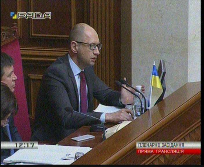 Головуючий надав слово Прем'єр-міністру Арсенію Яценюку. Він нагадав, що уряд вже протягом двох місяців просить Верховну Раду прийняти закони, необхідні для отримання чергового траншу від МВФ.