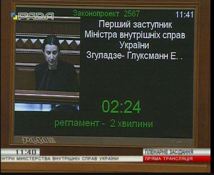 Перший заступник Міністра внутрішніх справ Е.Згуладзе-Глуксман доповіла пов'язаний з попереднім проект Закону "Про внесення змін до Бюджетного кодексу України (щодо плати за сервісні послуги, що надаються Міністерством внутрішніх справ)" №2568.