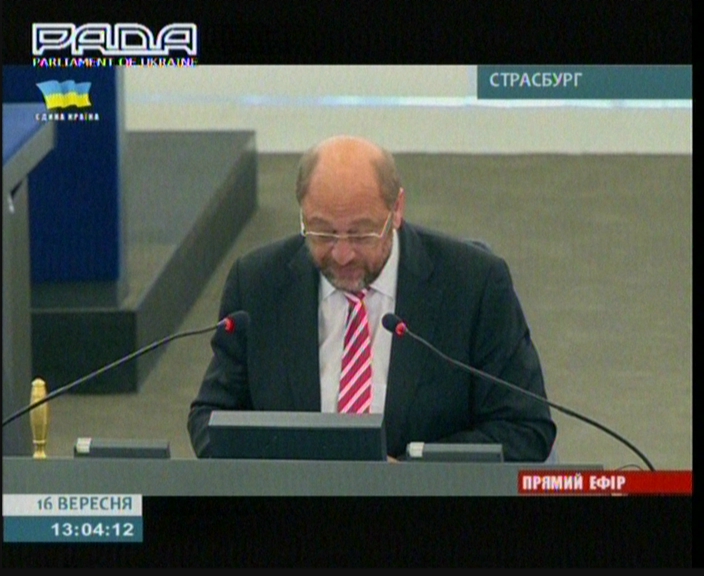 Під час прямого включення Президент Європейського парламенту Мартін Шульц зазначив, що "це історичний момент, момент, коли Європейський парламент сидить тут, у Страсбурзі, та наші партнери, Український парламент у Києві, будуть ратифіковувати Угоду про асоціацію. Ми будемо це робити одночасно за домовленістю. Це вільне самовизначення та вільна демократія - ратифікація".