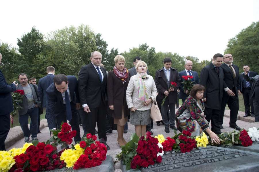 Від Верховної Ради України квіти до пам’ятника жертв Бабиного Яру поклали Олександр Грановський, Борислав Береза, Борислав Розенблат, а також в.о. Керівника Апарату Верховної Ради України Володимир Слишинський.