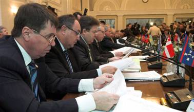Голова Комітету з питань державного будівництва і місцевого самоврядування Олександр Омельченко у своєму виступі акцентував увагу на трьох питаннях, які є головними для органів місцевого самоврядування: міжбюджетні відносини, земельні відносини і питання власності. Він зазначив, що держава делегує місцевим органам влади владні повноваження, а фінансування не забезпечує. Голова парламентського Комітету вніс пропозицію щодо розмежування земель державної і комунальної власності. За його словами, правом розпоряджатися землею, яка знаходиться у комунальній власності, має місцевий орган влади. Олександр Омельченко зазначив, що поки цього не буде, місцеві бюджети втрачатимуть величезні кошти. Він також вніс пропозицію про ухвалення законів, які надали б статус всім містам, в яких проходитиме Чемпіонат Європи з футболу у 2012 році.