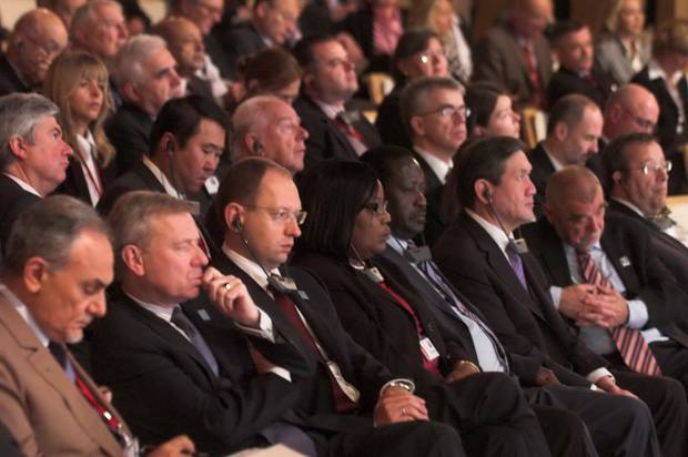 Голова Верховної Ради України Арсеній Яценюк 6 жовтня 2008 року взяв участь в Світовій політичній Конференції