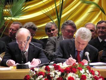 В.Литвин також висловив думку, що потрібно на науковому рівні говорити про “цементування національної, релігійної, громадянської єдності нації”. “Дуже важливо сформувати сильну політичну націю як передумову входження до європейської спільноти”, - сказав він.