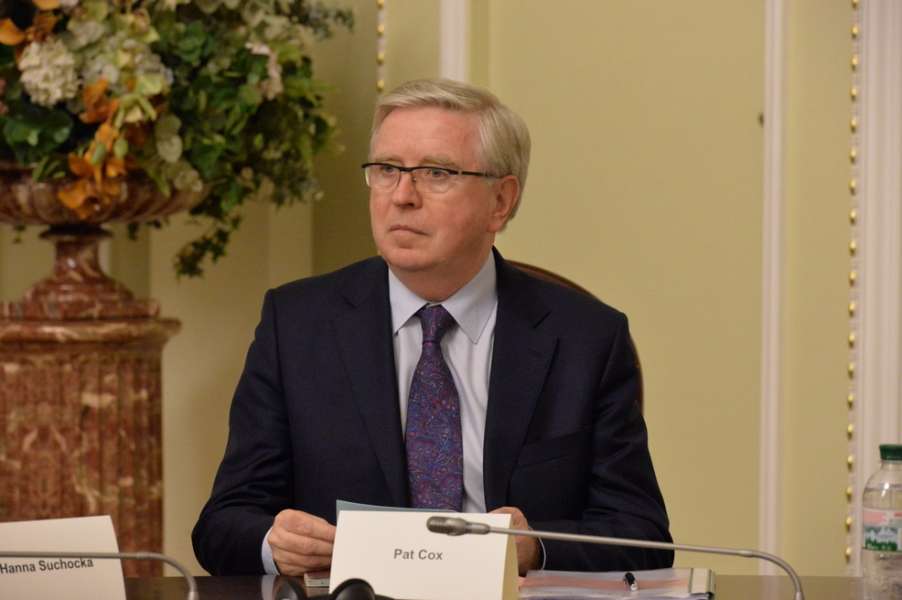 Він побажав успіхів учасникам дискусії, серед яких були Пан Пет Кокс, Посол ЄС в Україні Хьюг Мінгареллі, експерт Венеціанської комісії пані Ганна Сухоцька, Координатор системи ООН в Україні, Директор ПРООН в Україні Янтомас Хімстра, Віце-прем’єр-міністр України Іванна Климпуш-Цинцадзе, директор місії USAID Сюзан Фріц, народні депутати України, експерти.