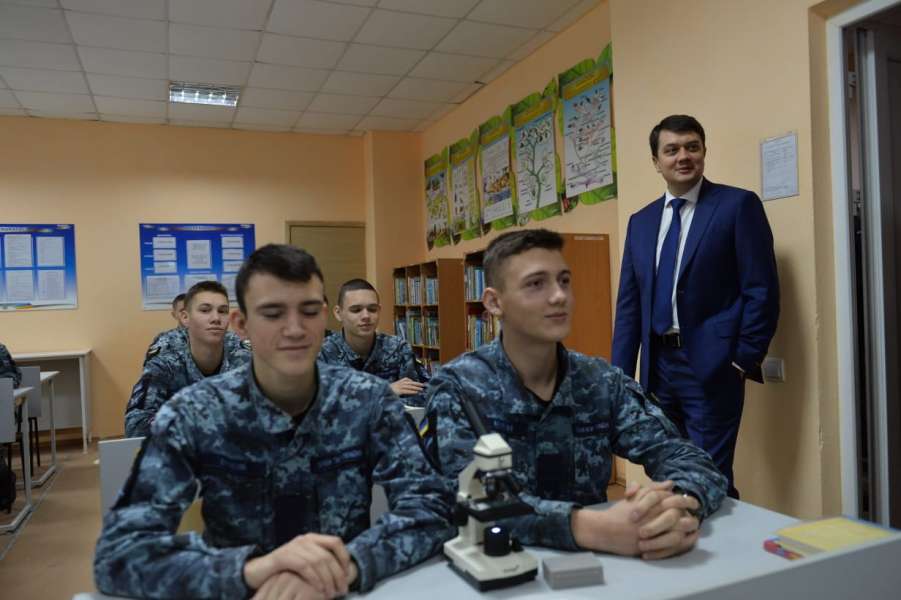Голова Верховної Ради України Дмитро Разумков у рамках робочої поїздки до Одеської області ознайомився з навчальною базою військово-морського ліцею імені віце-адмірала Володимира Безкоровайного та поспілкувався з педагогами й учнями закладу.