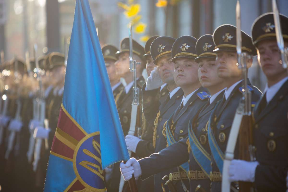 Учасники заходу поклали квіти до Стіни пам’яті полеглих за Україну. Було оголошено хвилину мовчання, після чого військовий оркестр виконав Державний гімн України. Воїни почесної варти салютували шістьма залпами.