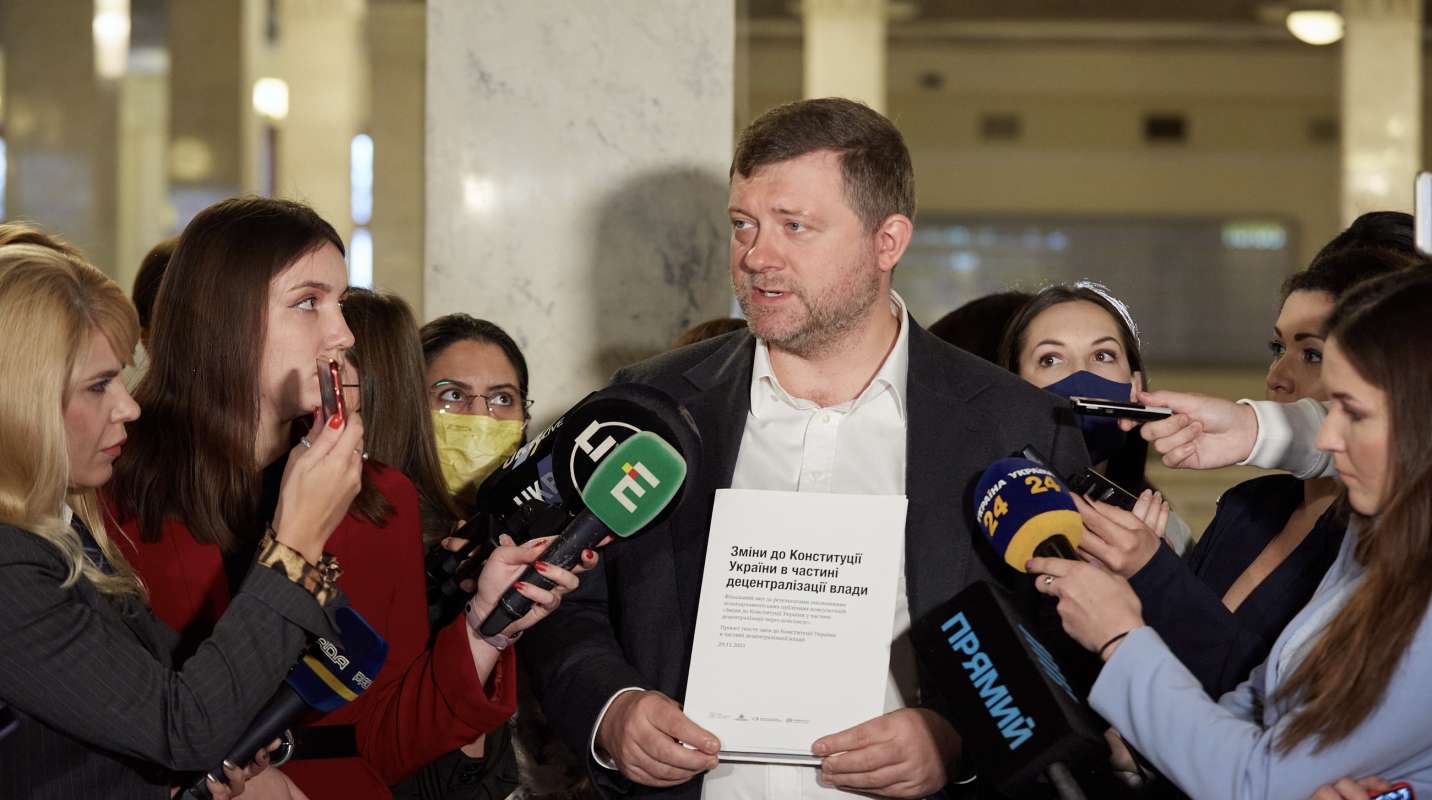 «Напередодні дня місцевого самоврядування ми підготували звіт за результатами публічних консультацій щодо змін до Конституції в частині децентралізації. Майже два роки тривали публічні консультації з представниками самоврядування. Ми взяли чотири базові асоціації: Асоціація міст України, Всеукраїнська асоціація громад, Українська асоціація районних та обласних рад, Всеукраїнська асоціація об'єднаних територіальних громад. І за два роки напрацьовано текст змін до Конституції», – повідомив він.