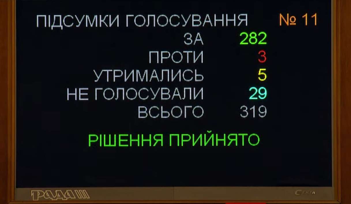 За відповідну постанову №6543 проголосували 282 народні депутати.