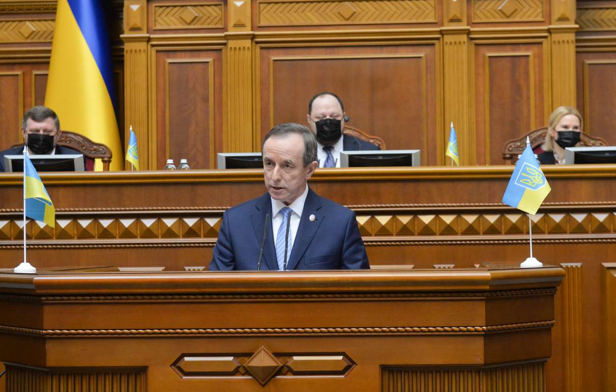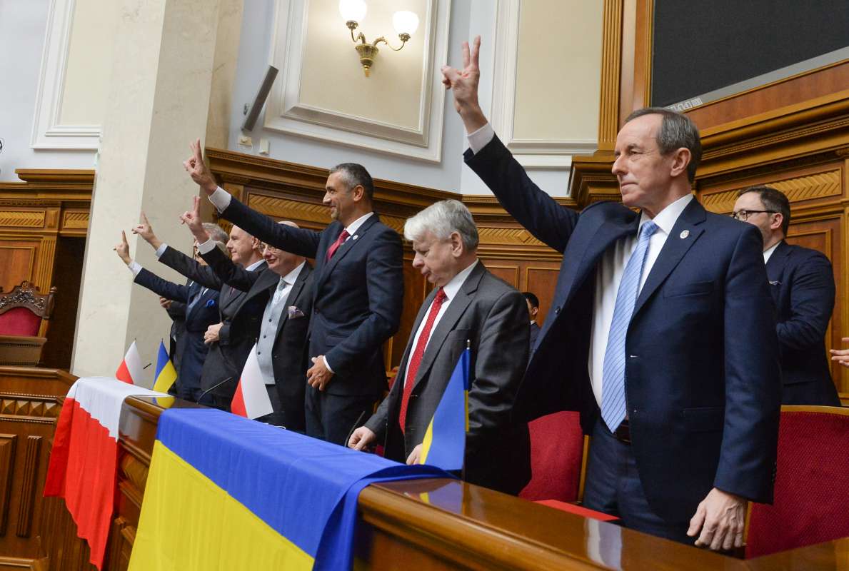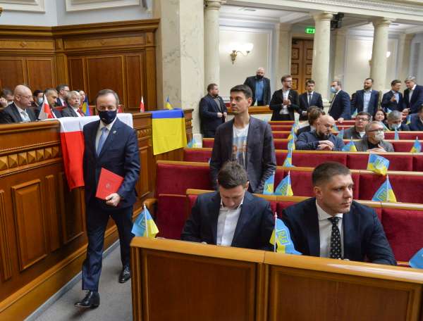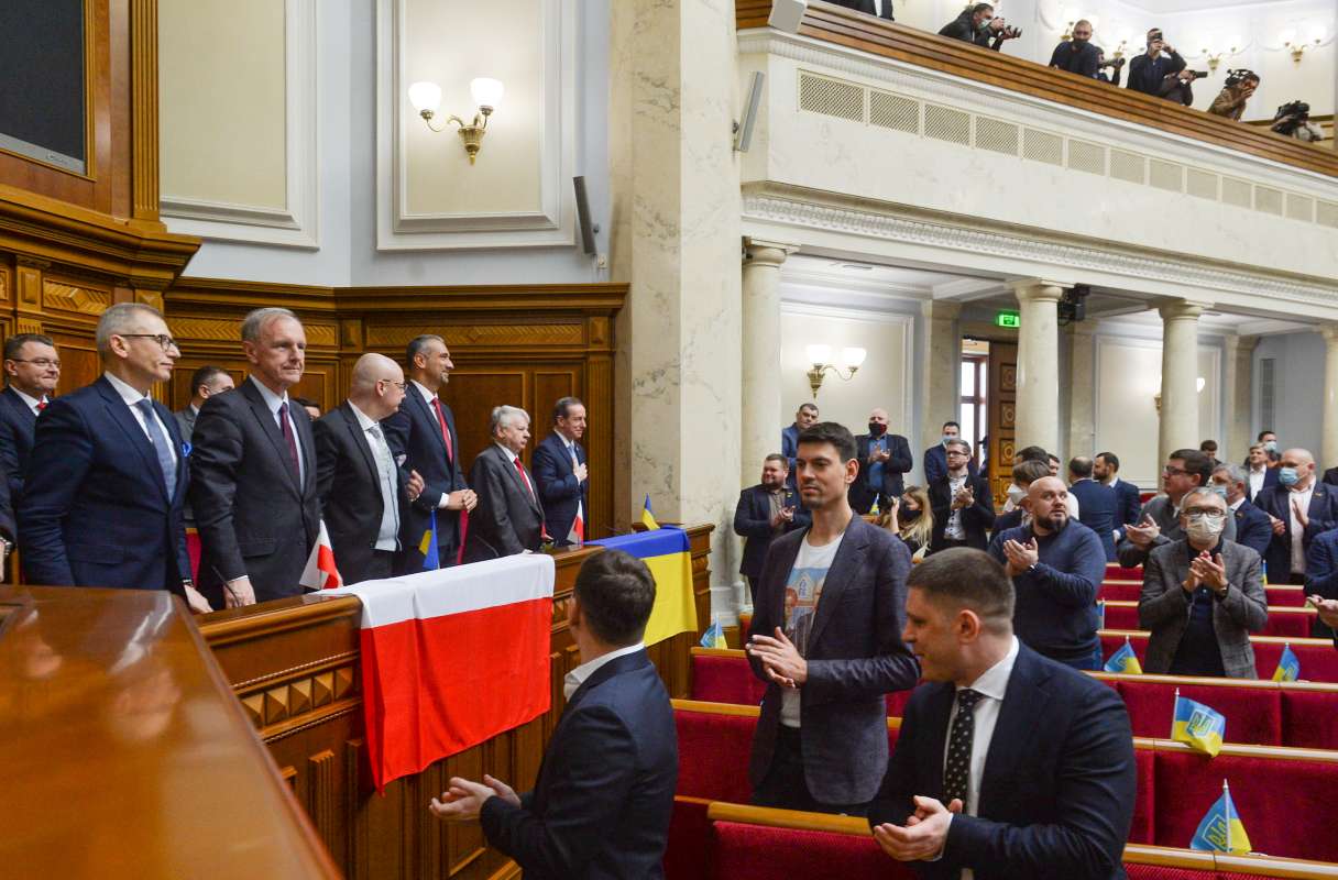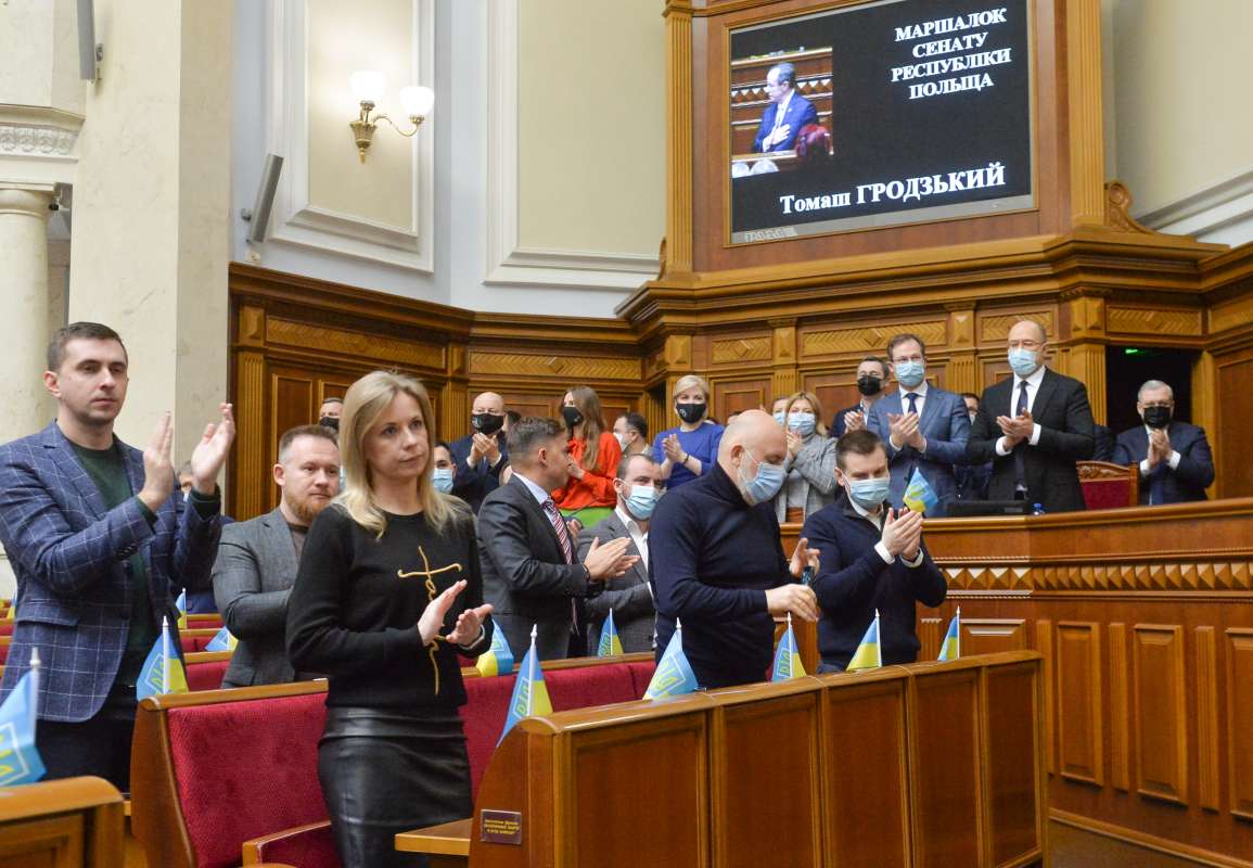 Під час виступу Томаш Гродзький повідомив, що до Парламенту України прибула велика делегація парламентаріїв, що складається з представників різних політичних сил. За його словами, ці політики часто ведуть між собою гострі політичні суперечки, проте у питанні щодо прояву солідарності та підтримки українському народові вони повністю єдині.