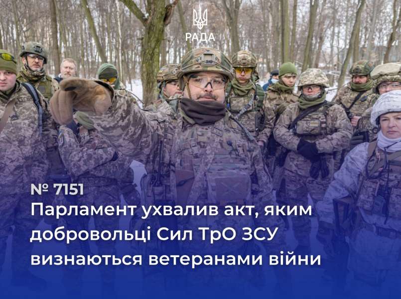 - закон 7151 — визнали добровольців Сил ТрО ЗСУ ветеранами війни, визначили таку категорію осіб як сім’ї загиблих Захисників та Захисниць України;