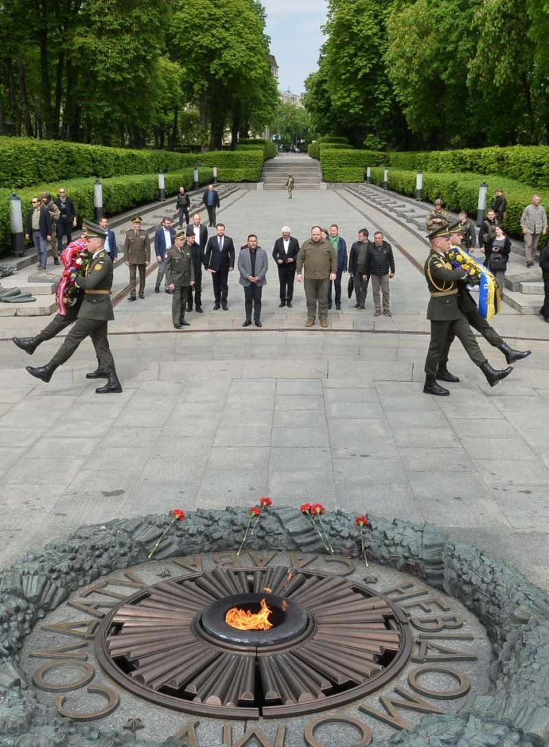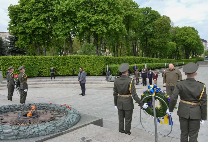 Голова Верховної Ради України Руслан Стефанчук разом із Президентом Стортингу Королівства Норвегія Масудом Гаракхані взяли участь у церемонії покладання квітів до могили Невідомого солдата і Стіни Пам’яті полеглих захисників України в російсько-українській війні. Вшанували пам'ять загиблих хвилиною мовчання.