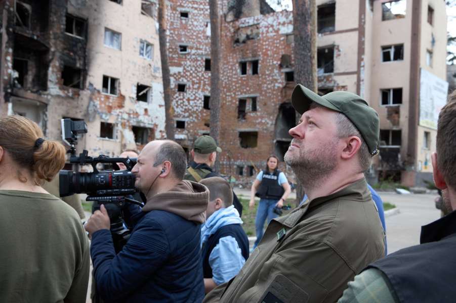 «Наше мужнє передмістя Києва зробило дуже великий подвиг, завдяки якому ворог не потрапив до столиці», — зауважив Перший віцеспікер Парламенту та додав, що саме після таких зустрічей та візитів до міст Київщини відбувалися певні зрушення щодо постачання зброї та гуманітарної підтримки.