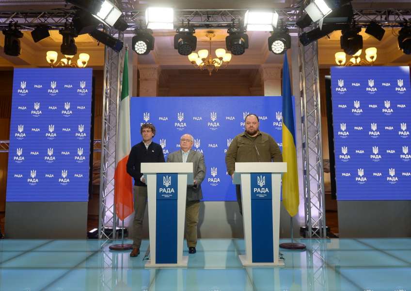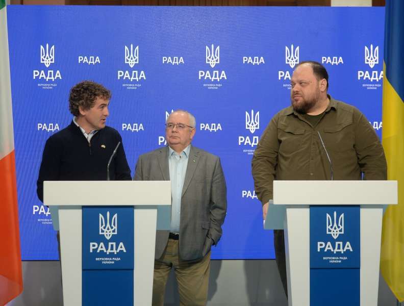Голова Верховної Ради України Руслан Стефанчук під час брифінгу подякував спікерам верхньої та нижньої палати Парламенту Ірландії за те, що вони відгукнулися на запрошення приїхати до Києва, поспілкуватися з парламентаріями України та на власні очі побачити залишки «руского міра».