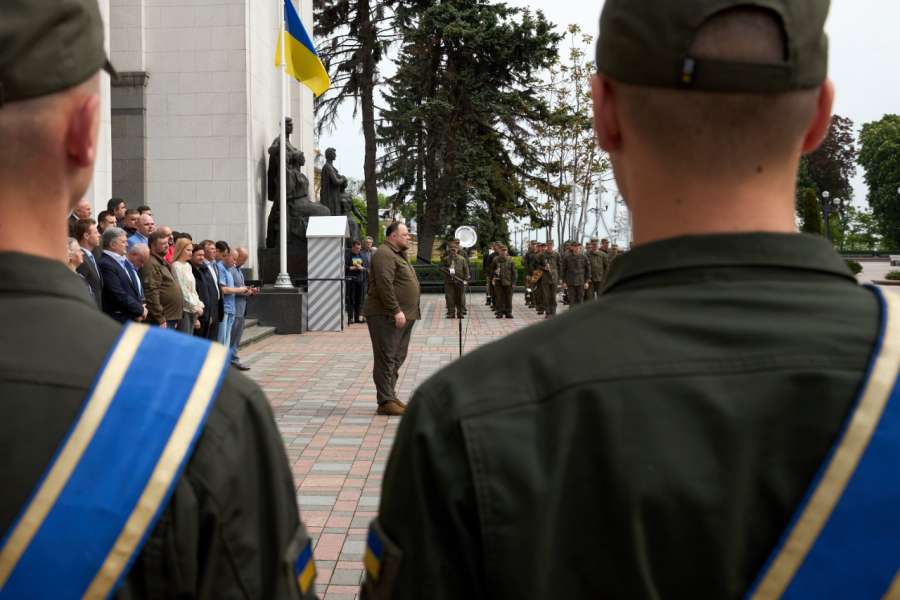 Голова Верховної Ради України Руслан Стефанчук узяв участь у церемонії підняття прапора Європейського Союзу перед будівлею Парламенту на честь Дня Європи.
