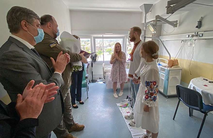Сьогодні у військовому госпіталі «Персі» відбулася церемонія одруження пораненого українського військовослужбовця Сергія Нікуляка і його нареченої Марії Храбрих.