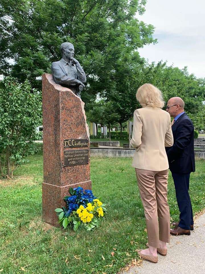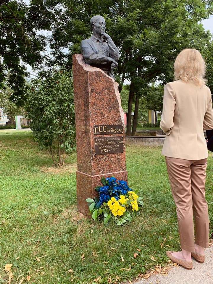 Вона також наголосила, що монумент Григорію Сковороді нагадує Європі, що Григорій Савич — видатний український поет і філософ світового масштабу.