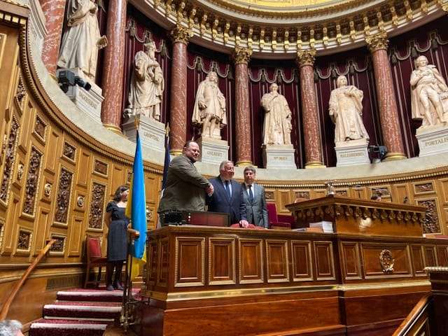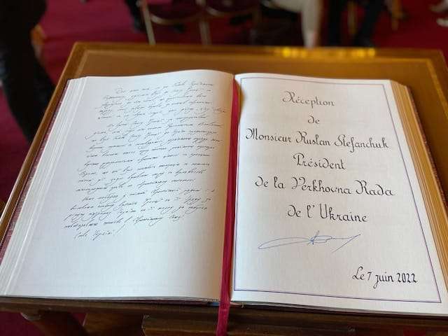Насамперед Руслан Стефанчук подякував у особі Президента Сенату кожному французу, який підтримує Україну, великому французькому народу, який прихистив 85 тисяч український людей, що втікали від війни.
