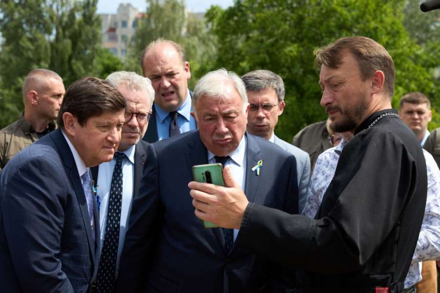 Окрім того, Олександр Корнієнко повідомив, що Жерар Ларше поспілкувався з колегами — нинішніми очільниками громад Бучі і Бородянки, «краще та глибше зрозумів проблеми, які є в передмісті Києва після жахливої російської окупації».