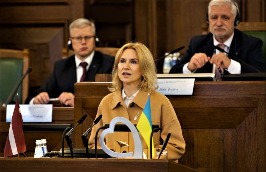 Від імені Українського народу та Верховної Ради України, від щирого, дружнього і відкритого серця, хочу привіти Вас, пані Голово, та усіх депутатів із 100-річчям Саейми Латвійської Республіки.